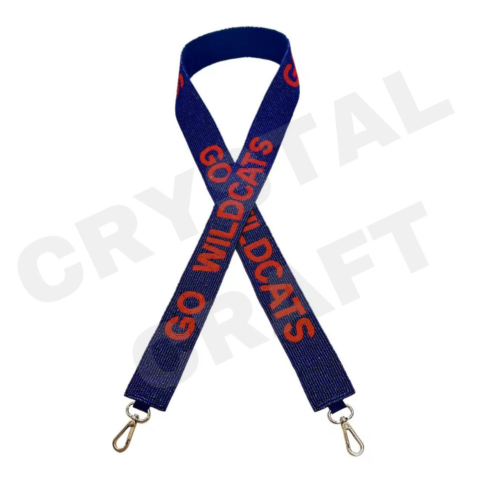 Go Wildcat สายกระเป๋าลูกปัดสีฟ้าสายรัดลูกปัดสีทองสีขาวปรับแต่งได้สายรัดลูกปัดสำหรับกระเป๋า