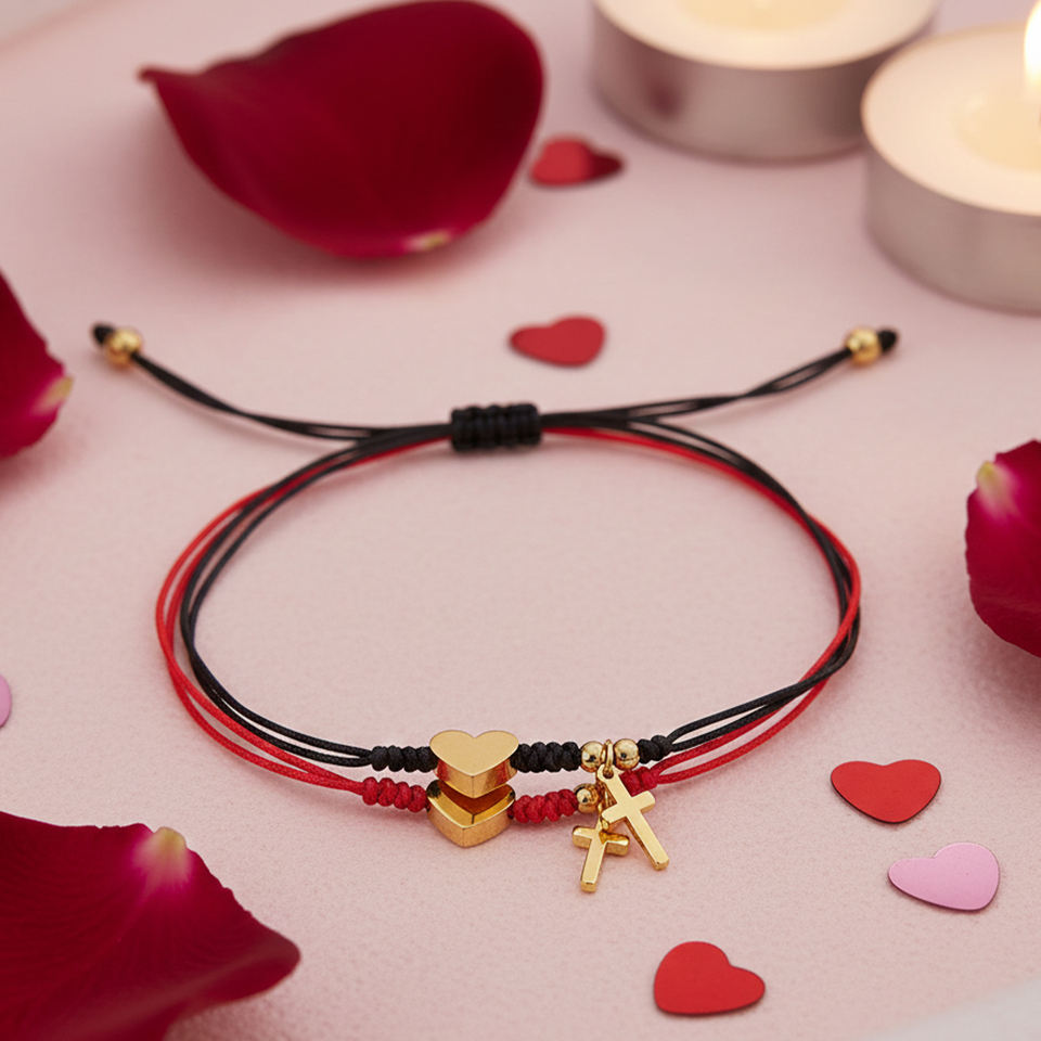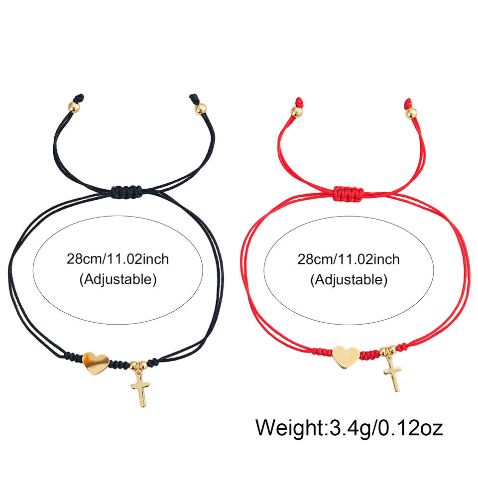 ชุดกำไลข้อมือจี้รูปหัวใจและไม้กางเขนชุบทองปรับขนาดได้ ของขวัญวันวาเลนไทน์สำหรับคู่รัก Go2boho