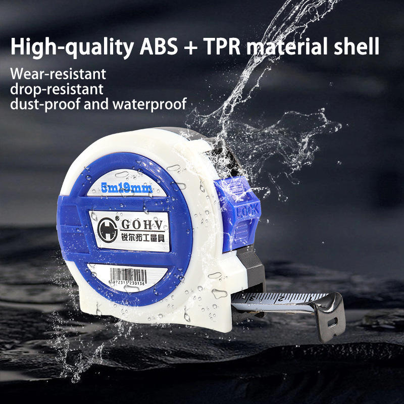 ตลับเมตรเหล็ก GoHV 5 เมตร แบบเมตริก ล็อคอัตโนมัติ กดปุ่ม ตลับเมตรม้วนเก็บอัตโนมัติ พร้อมใบมีดเคลือบไนลอน
