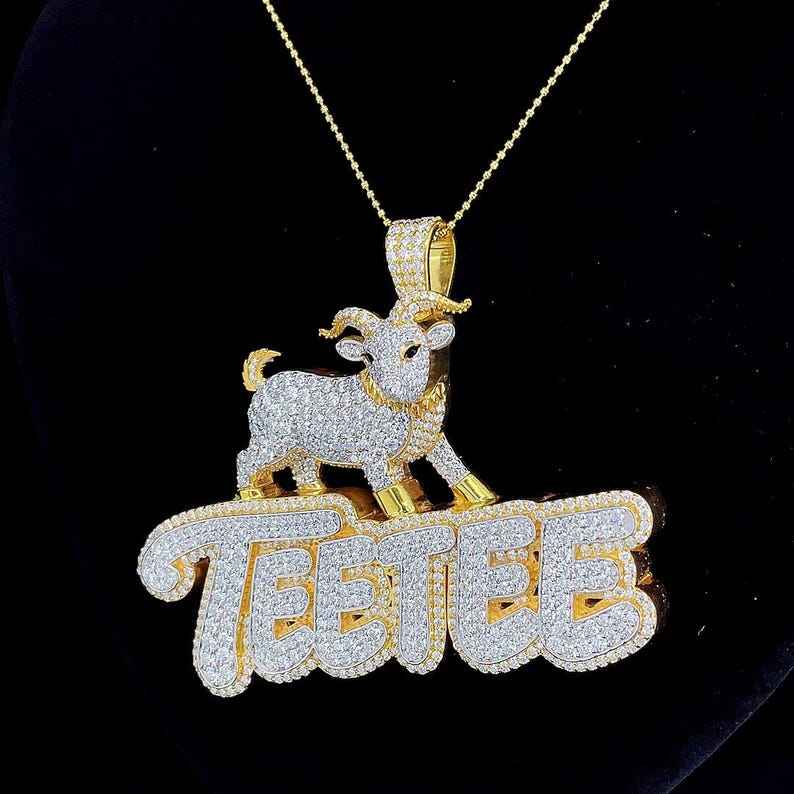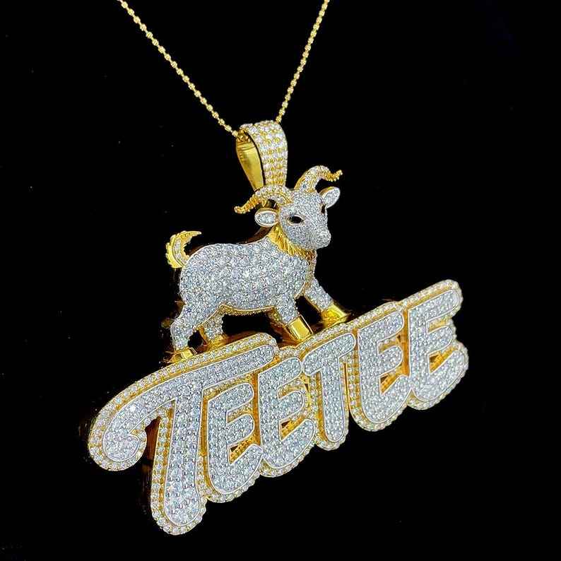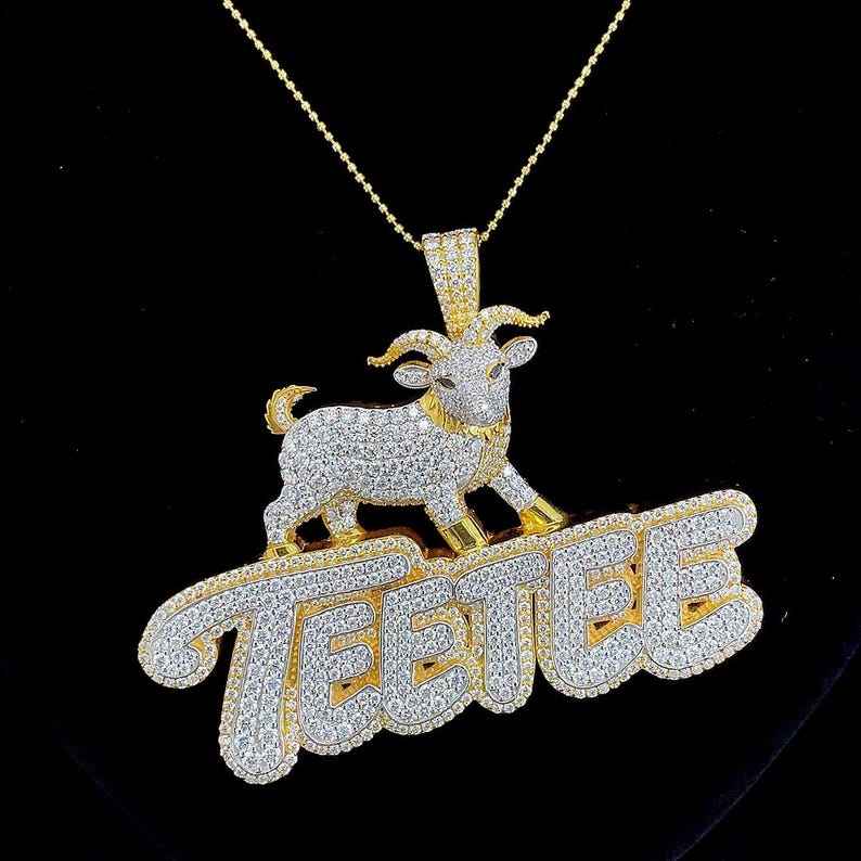 จี้รูปแพะสไตล์ฮิปฮอปแบบสั่งทำได้ 2 ชั้น ชุบสองชั้น ประดับเพชร จี้ตัวอักษรสองสี จี้เงินแท้ 925