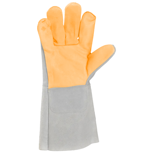 ถุงมือเชื่อมหนังวัวลายแพะแบบแยกนิ้วถุงมือก่อสร้างกันไฟทนนานสำหรับงานบาร์บีคิวงานหนัก