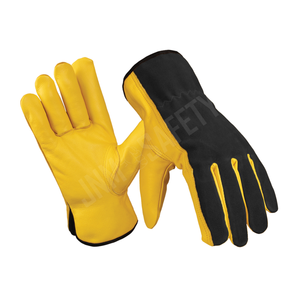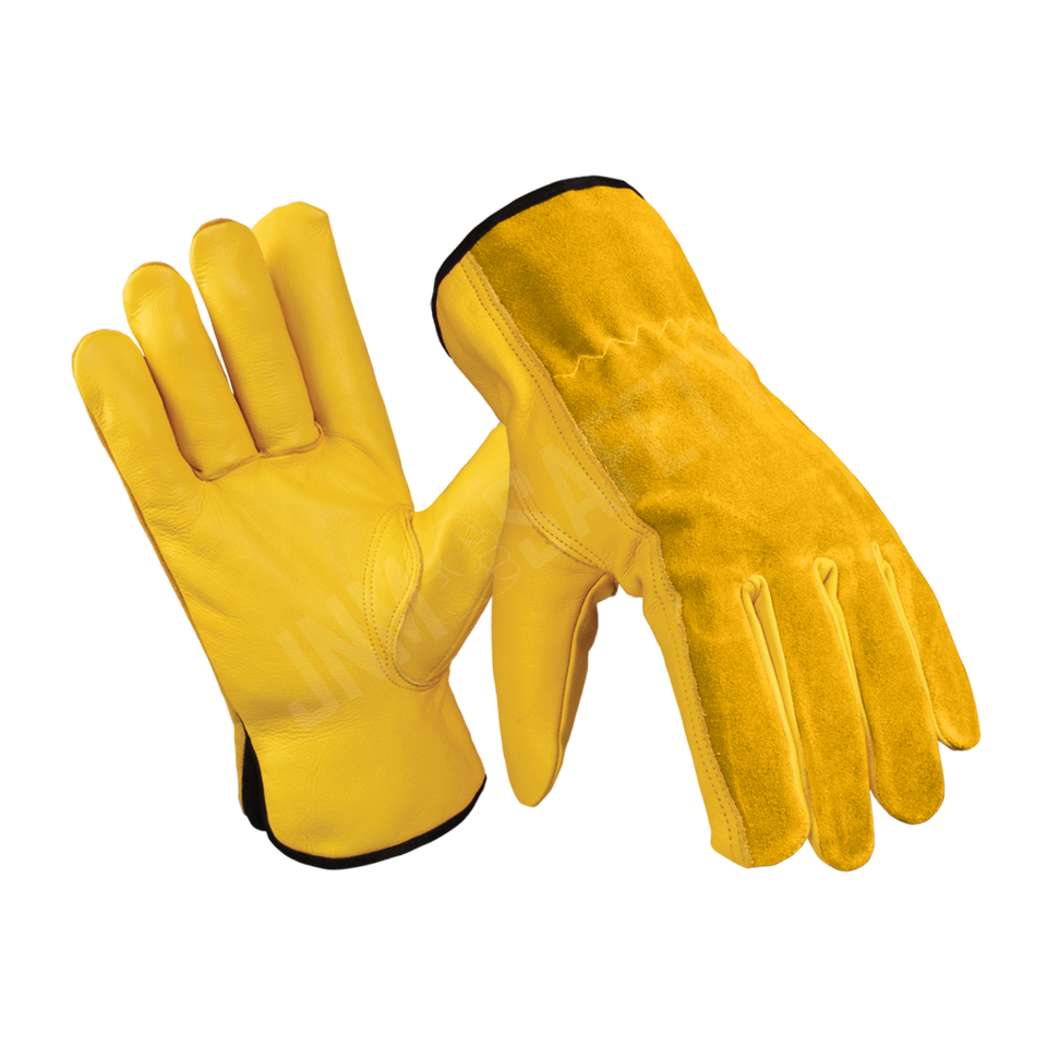 ถุงมือนิรภัยหนังวัวลายแพะแบบแยกชิ้นจากปากีสถานทนไฟป้องกันการสั่นสะเทือนสำหรับขับรถทำงานเชื่อมงานทำสวน