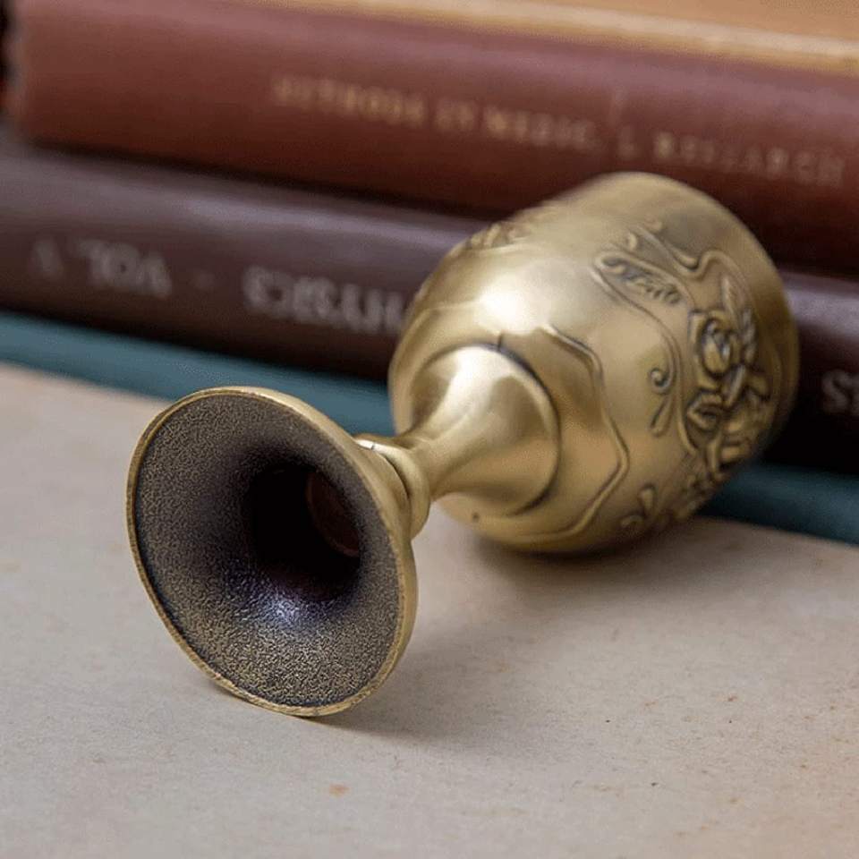 ถ้วยเซรามิกเซรามิกรูปถ้วยเหล้าลายนูนทำจากทองเหลืองทองเหลืองสลักลายดอกไม้สไตล์วินเทจ1ออนซ์ทำด้วยมือ