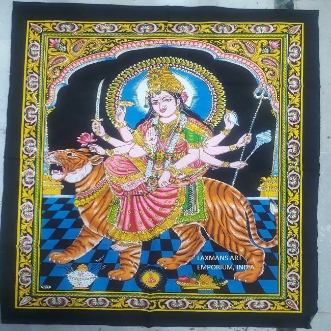 พรมผนังพิมพ์ลายเทพธิดาดูราเทพีแขวนผนังตกแต่งเทพธิดาฮินดูพรมขายส่งสำหรับตกแต่งเทพเจ้าฮินดู