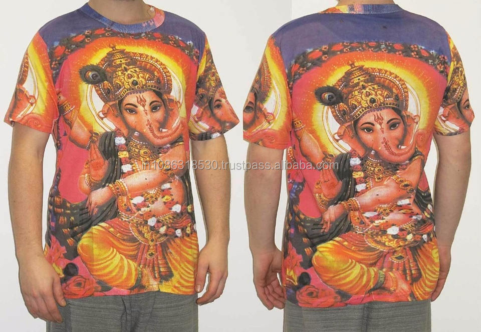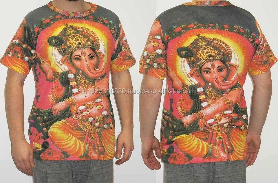 เสื้อยืดลายเทพเจ้าและพระพิฆเนศ ดีไซน์อินเดีย ฮินดู พระเจ้าแห่งอินเดีย ลายพิมพ์สไตล์ไซเคเดลิก สำหรับทุกเพศ แนวฮิปปี้ ดีเจ ศิลปะ ไซส์ M / L / XL