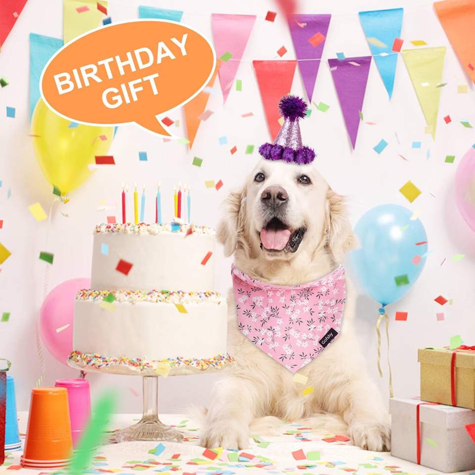 ผ้าพันคอสุนัข Gofshy 4 ชิ้น ผ้าพันคอแบบผูก ผ้าพันคอพิมพ์ลายดอกไม้ สีชมพู สีเขียว สีส้ม ขนาด 18 นิ้ว สำหรับสุนัขพันธุ์กลางและใหญ่ สำหรับสุนัขเพศเมีย ฤดูหนาว