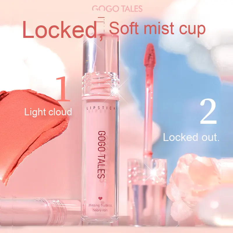 Gogo Tales ลิป GT695เนื้อโคลนนุ่มแบบไม่เปื้อนลิปสติกครีมนู้ดลิปกลอสสีน้ำตาลสำหรับผู้หญิงที่มีฟังก์ชั่นแต้มสี