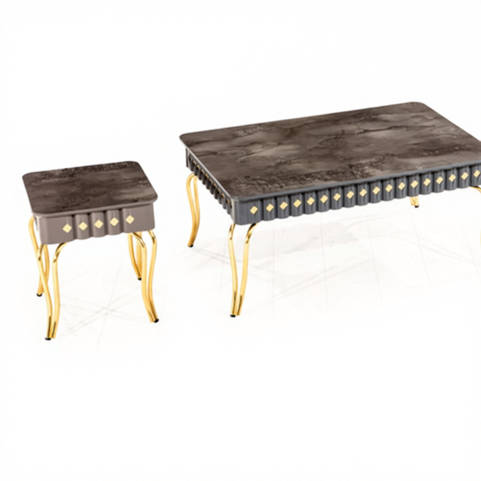 Gokce 2 + 1 orta sehpas MDF + โต๊ะกาแฟโลหะโบราณทันสมัยทนทานเฟอร์นิเจอร์ห้องนั่งเล่นคลาสสิกประกอบง่ายทำความสะอาดง่าย