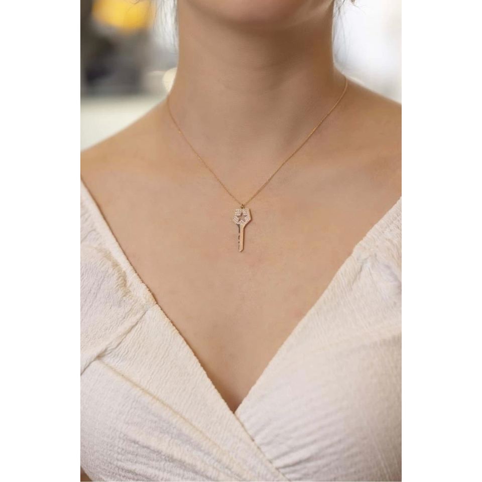 สร้อยคอทองคำ 14K ดีไซน์แฟนซี โรเดียม มรกต ไพลิน เซอร์คอน มอยส์ซาไนต์ เพชร มุก ทับทิม โรสโกลด์ ประดับด้วยหลายอัญมณี