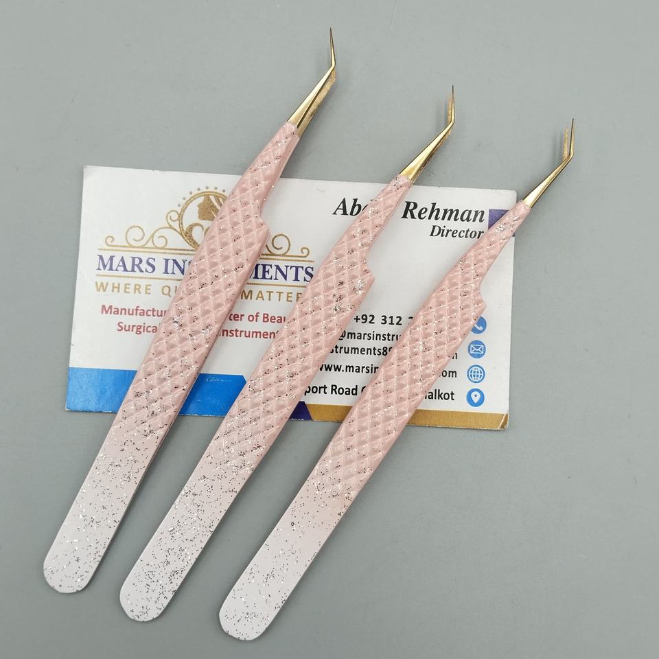 Gold 45 Degree Curved Japanese Stainless Steel Individual Eyelash Extension Tweezers Diamond Grip Lash Tweezers Powder Coating