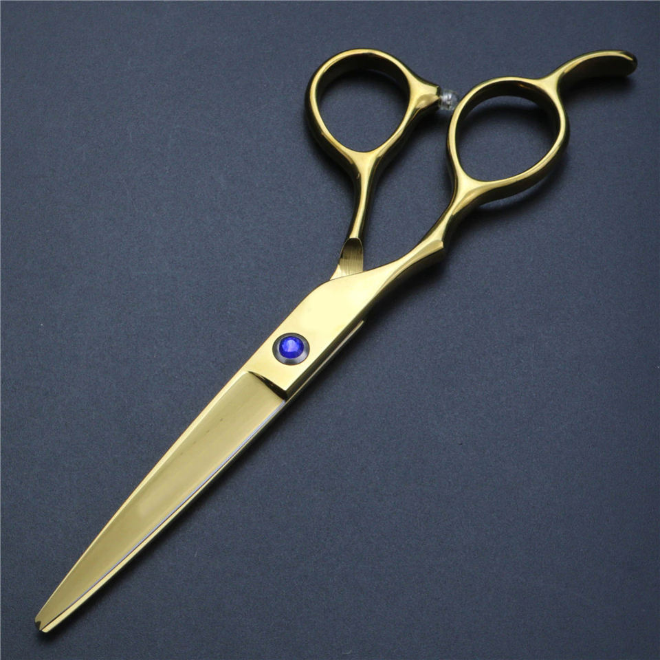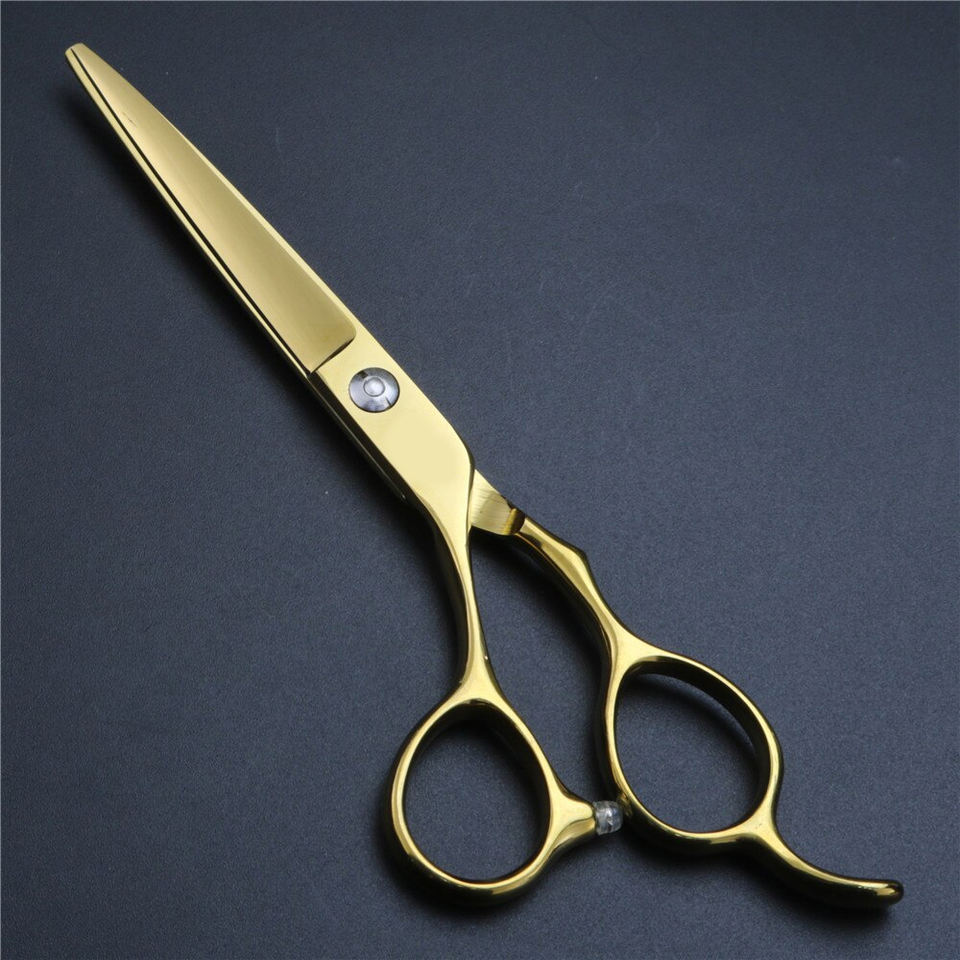 กรรไกรตัดผมมือซ้ายสีทองขนาด 6 นิ้ว 440c ชุดกรรไกรตัดผมมืออาชีพสำหรับร้านทำผม ชุดกรรไกรตัดผมสำหรับช่างตัดผม