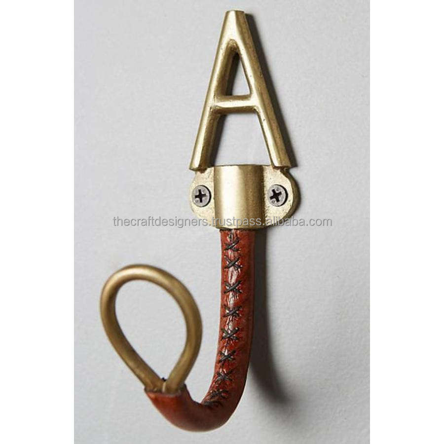 ตะขอแขวนเสื้อตัวอักษรสีทองตะขอติดผนังทำจากทองเหลืองชิ้นเดียวสำหรับตกแต่งบ้าน