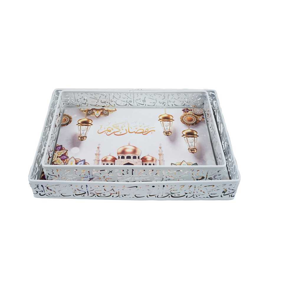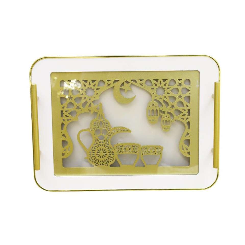 ถาดอลูมิเนียมสีทองสำหรับตกแต่งทรงสี่เหลี่ยมผืนผ้าเหมาะสำหรับการเสิร์ฟอาหารเดือนถือศีลอดและงานเฉลิมฉลอง2สี