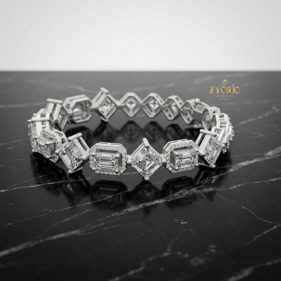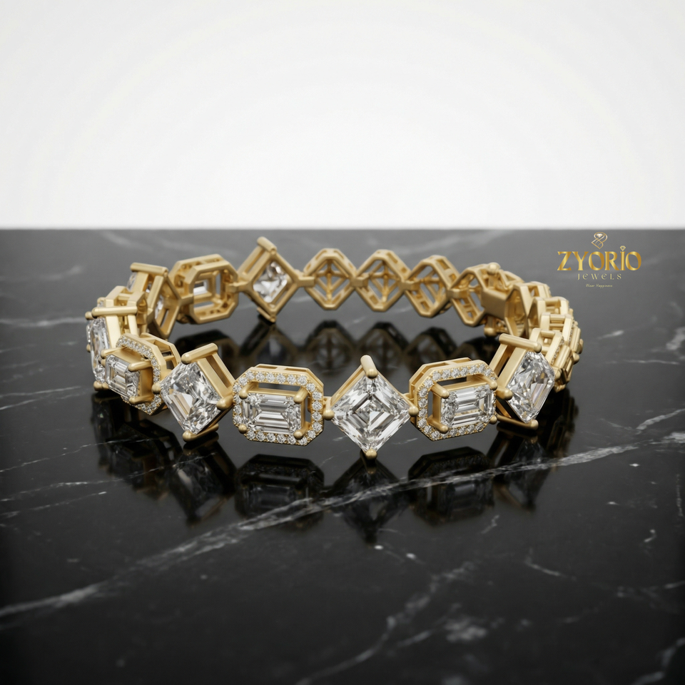 กำไลข้อมือเพชรทรงแอสเชอร์สีทอง เงินสเตอร์ลิง คลาสสิก หรูหรา สง่างาม เหมาะเป็นของขวัญสำหรับผู้หญิง งานปาร์ตี้ งานแต่งงาน สวยเหนือกาลเวลา