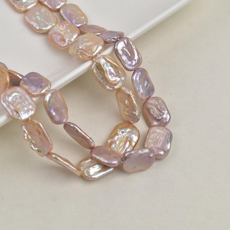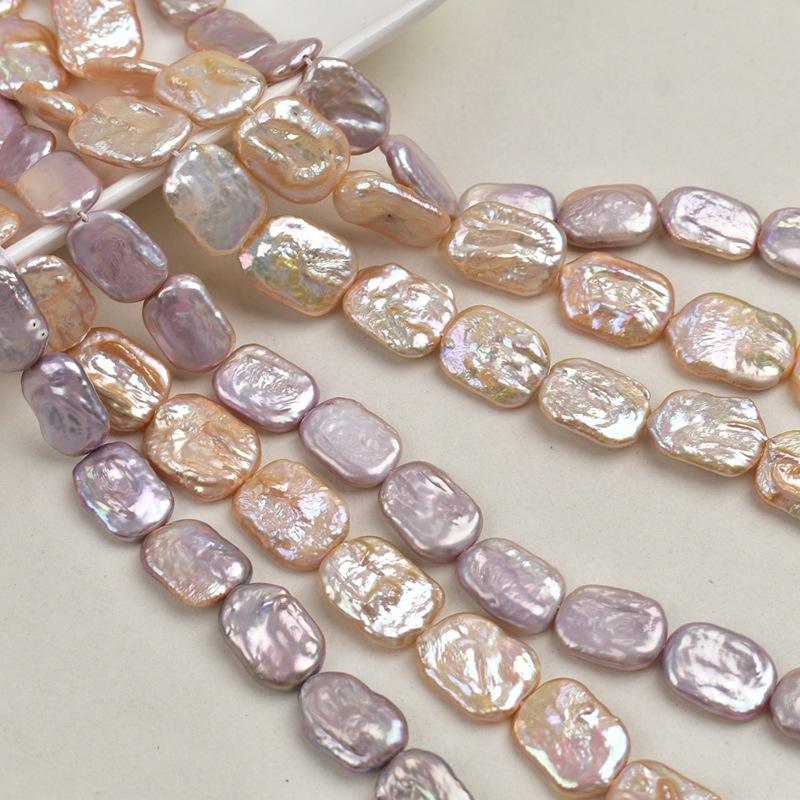 สร้อยคอลูกปัดทองคำเปลือยประดับด้วยไข่มุกน้ำจืดทรงบาร็อคสีขาวและสีชมพูธรรมชาติ พร้อมไข่มุกทรงสี่เหลี่ยมสีม่วง สำหรับงาน DIY
