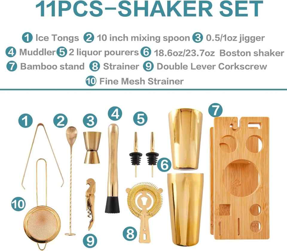 บาร์ประเภทเครื่องมือ:มาตรการบาร์, ตัวเลือกยอดค๊อกเทล, เขย่าค๊อกเทล, จี๊เกอร์, ชุดเครื่องปั่นค็อกเทล, บอสตันเชคเกอร์, ที่หยิบน้ำแข็ง