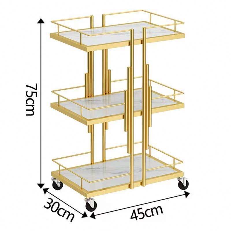 รถเข็นความงามสีทองพร้อมล้อ3ชั้นอุปกรณ์ร้านทำเล็บเท้าสปาเล็บเท้าดีไซน์ใหม่