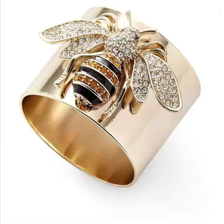 แหวนประดับเพชรเทียมดีไซน์รูปผึ้งสีทองสำหรับผู้หญิงเครื่องประดับแฟชั่นสไตล์แมลงเพชร CZ หรูหรา