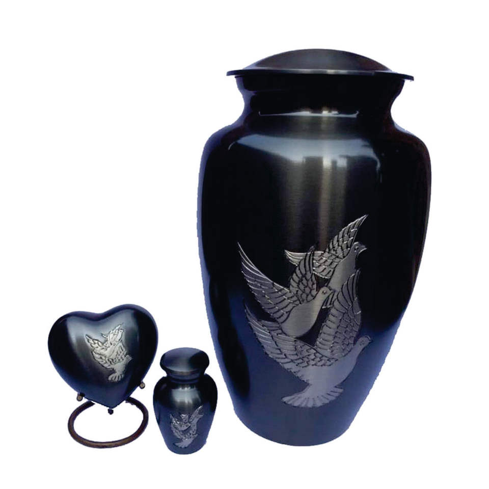 โกศโลหะโบราณสำหรับขี้เถ้า,โกศเผาศพผู้ใหญ่สไตล์อเมริกัน/ยุโรปสลักรูปนกสีทองและสีเทา