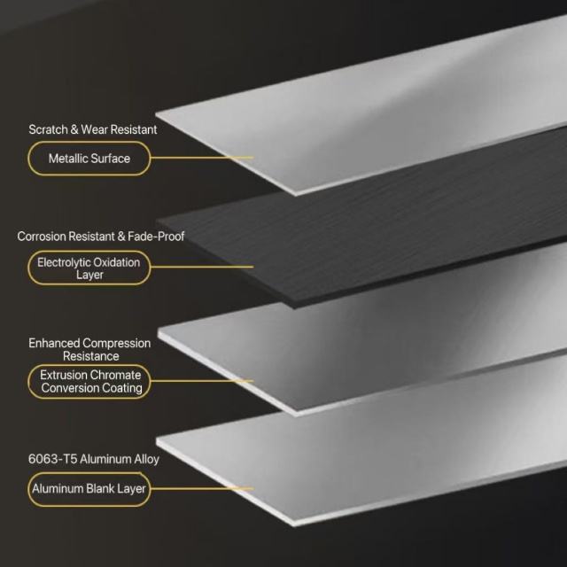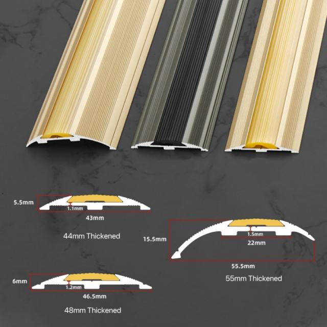 Gold/Black Aluminum Rubber Flat Buckle Anti-Slip Floor Transition Strip (6063-T5 Aviation Alloy)