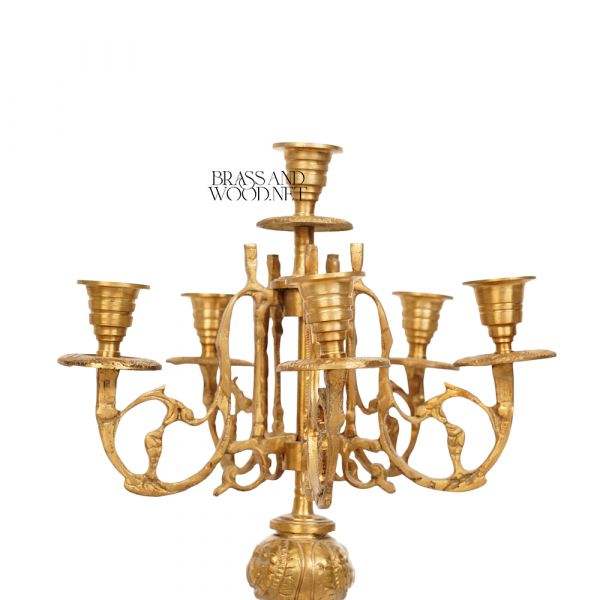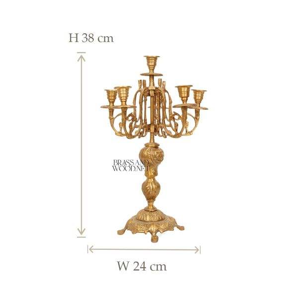 เชิงเทียนทองเหลืองสีทองวินเทจ7แขนสำหรับตกแต่งบ้านหรูหราคลาสสิก