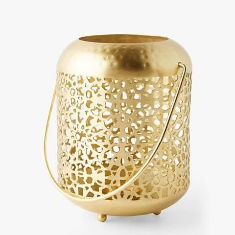 โคมไฟทองเหลืองสีทองสะท้อนฝีมือดั้งเดิมที่มีการแกะสลักอย่างละเอียดและการตกแต่งแบบโบราณ