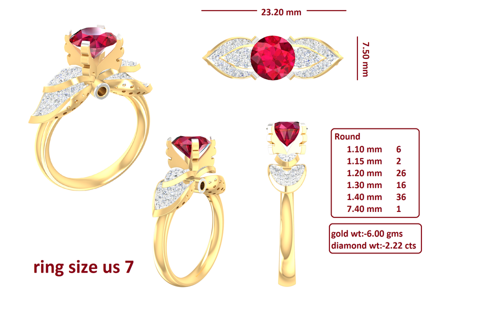 แหวนทองประดับเพชรและทับทิมรูปผีเสื้อ ดีไซน์ใหม่ล่าสุด งานแฮนด์เมด พร้อมจำหน่าย