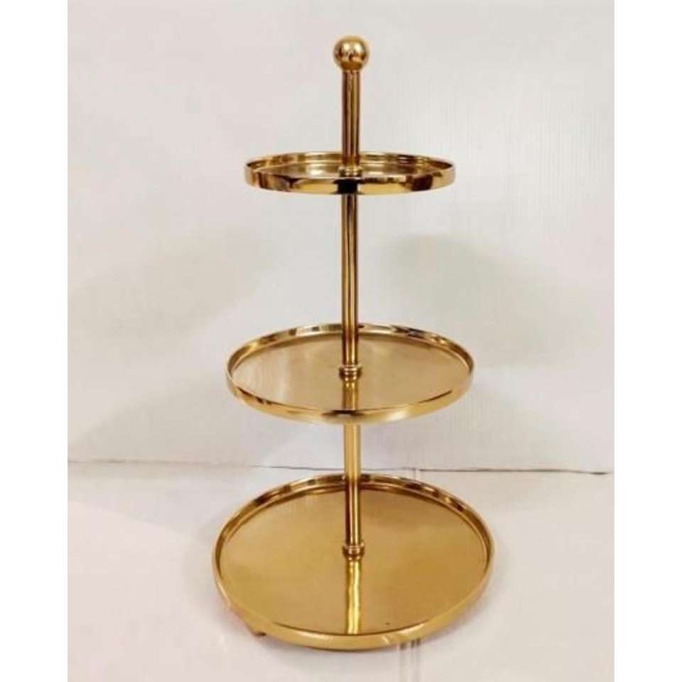 ชั้นวางเค้กสีทองของตกแต่งบ้านหรูหรา3ชั้นสำหรับตกแต่งเค้กแต่งงานโต๊ะแสดงคัพเค้กผลไม้ถาดและจาน