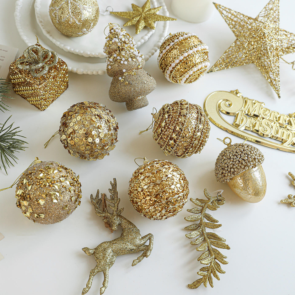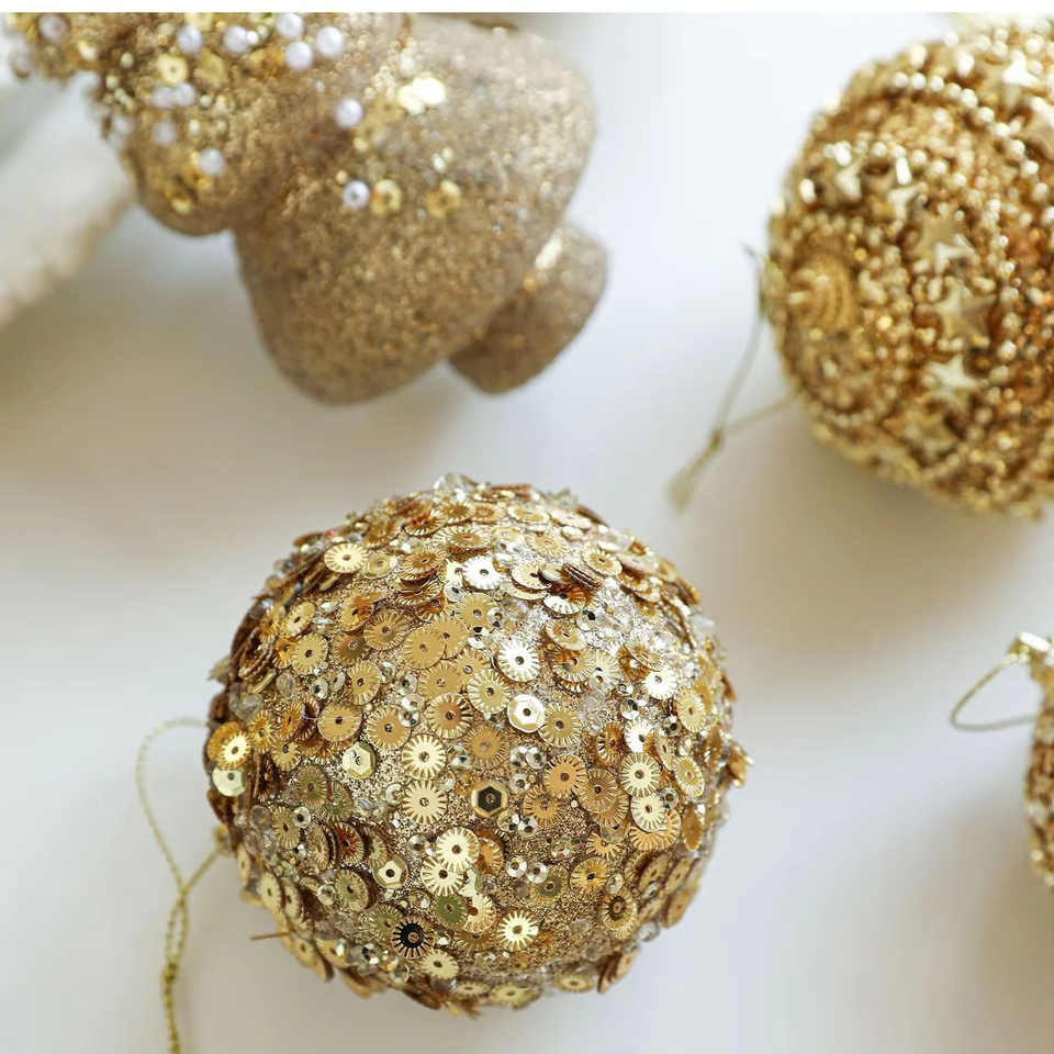 ลูกบอลคริสต์มาสสีทอง ทนทานต่อการแตกหัก ประดับด้วยกลิตเตอร์และเลื่อม ลูกบอลโฟมตกแต่งต้นคริสต์มาส ของประดับตกแต่งต้นคริสต์มาสแบบแขวน