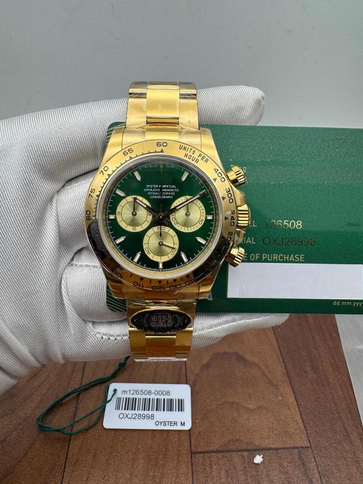 Gold Chronograph 40mm Automatic Watch Green Dial Champagne Subdials Ceramic Tachymeter Bezel for Bracelet ETA MOVEMENT Hip Hop