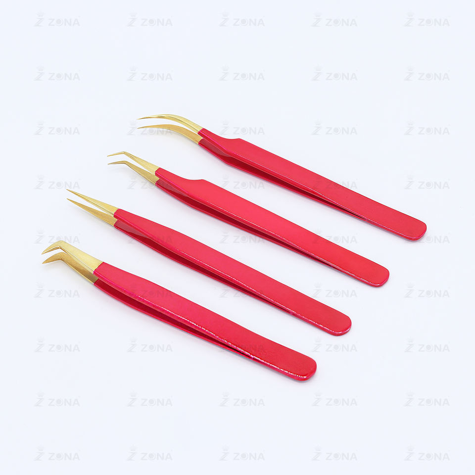 ชุดแหนบปลายขนตาเคลือบทอง4ชิ้นแหนบสำหรับต่อขนตาไม่ขึ้นสนิมแหนบปริมาณสแตนเลส
