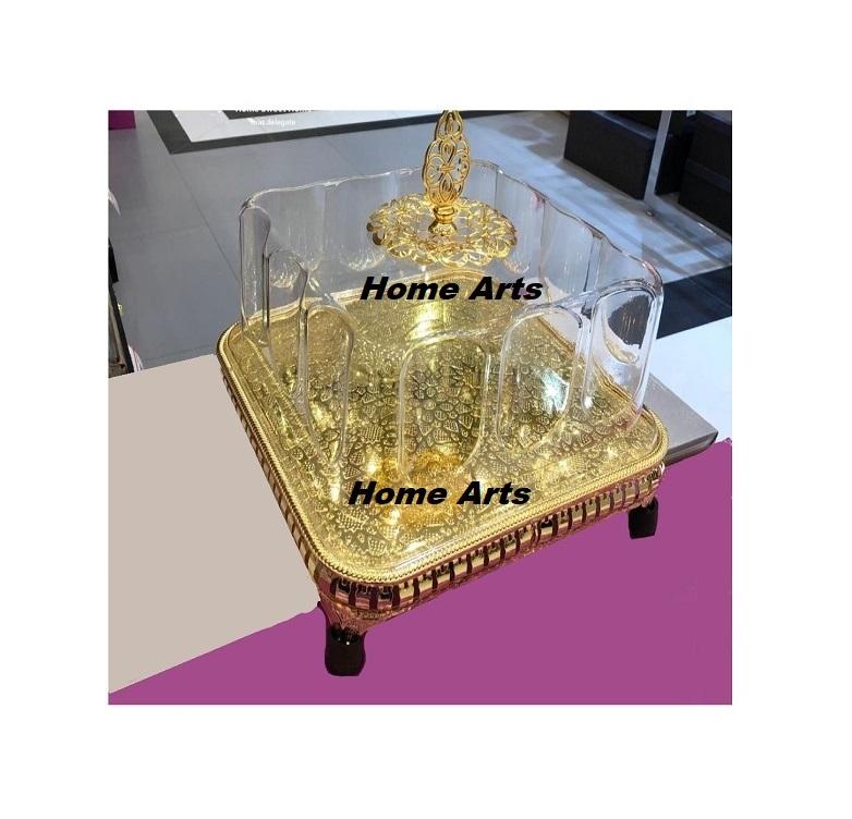 ฐานวางเค้กอะลูมิเนียมสีทองพร้อมฝาครอบอะคริลิค ดีไซน์ใหม่ล่าสุด สำหรับเสิร์ฟช็อกโกแลตในงานแต่งงาน