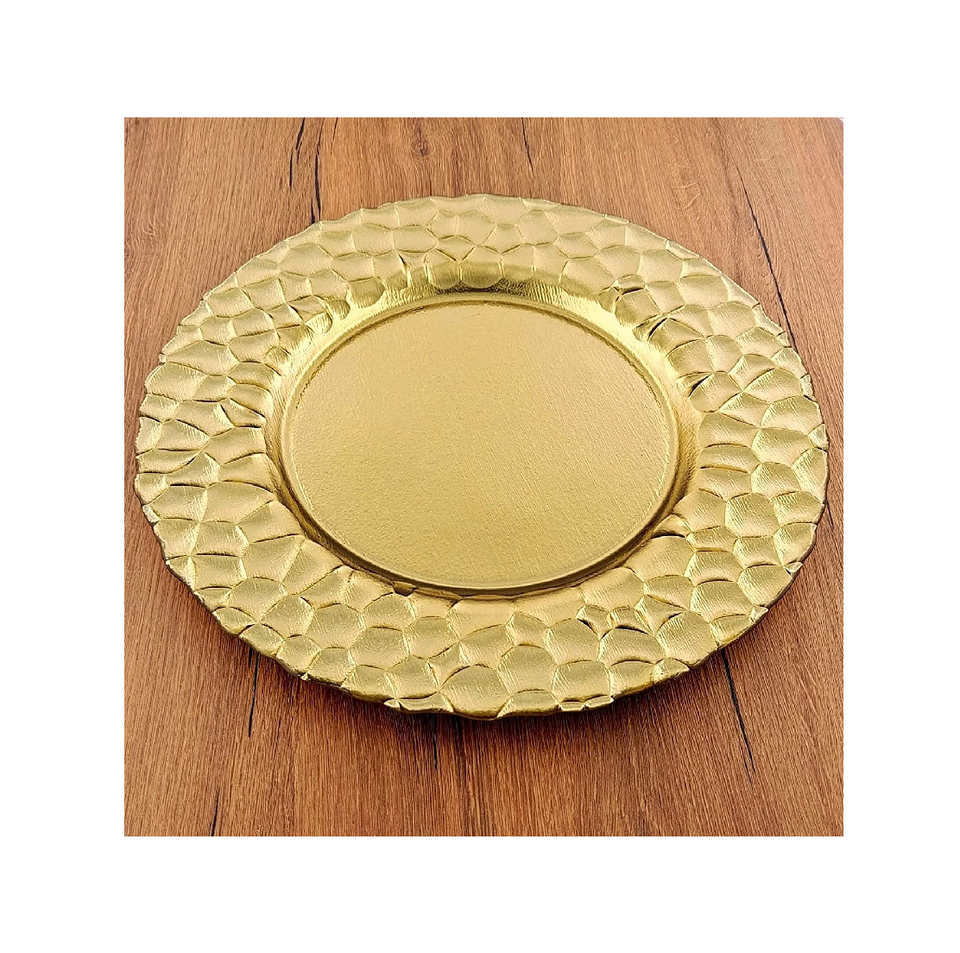 แผ่นชาร์จดีไซน์เนอร์ทองเหลืองสีทองเครื่องใช้รับประทานอาหารที่ดีที่สุดแผ่นชาร์จด้านบนออกแบบบรรจุภัณฑ์ตามสั่ง