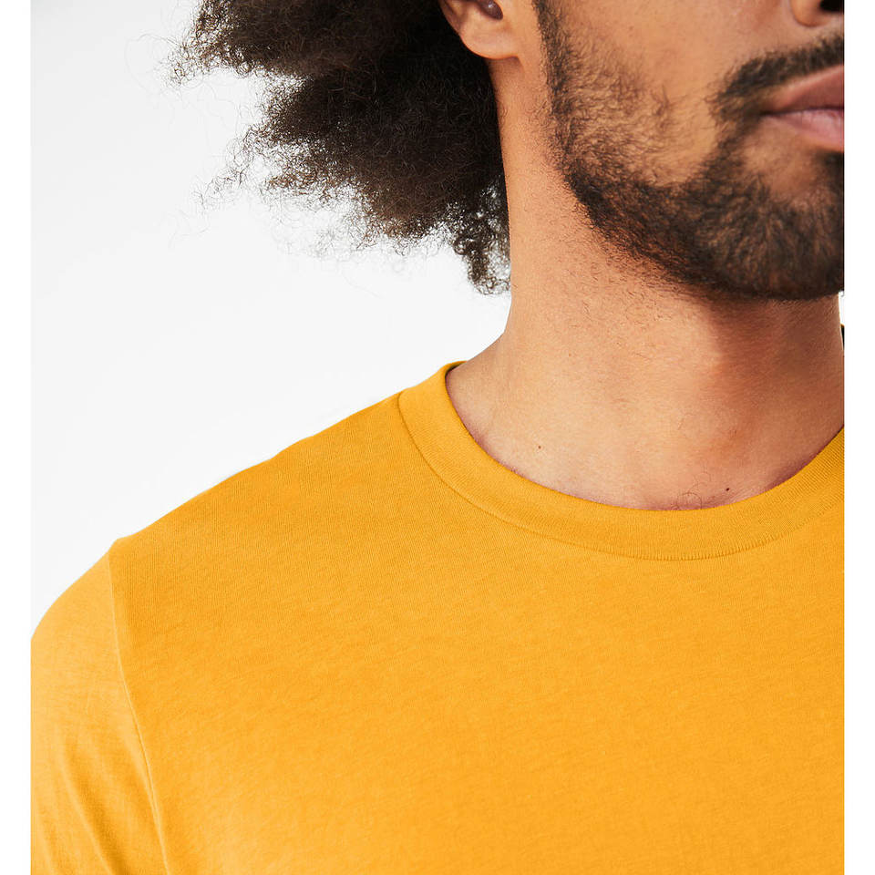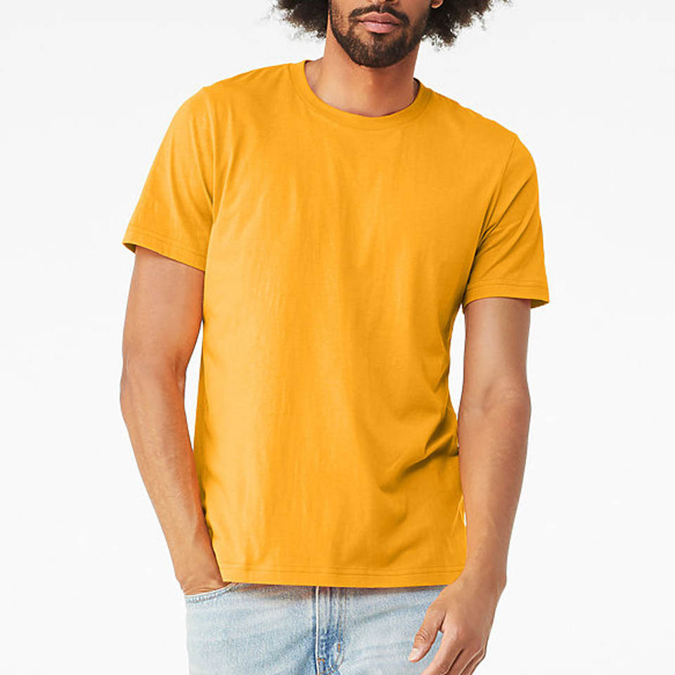 เสื้อยืดลำลองสีทองสำหรับผู้ชายเสื้อยืดแขนสามส่วนทรงปกติสีเหลืองมัสตาร์ดแบบปรับแต่งได้จากโรงงานเสื้อยืดผ้าฝ้าย100% แบบปรับแต่งได้