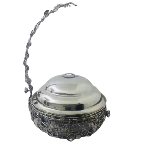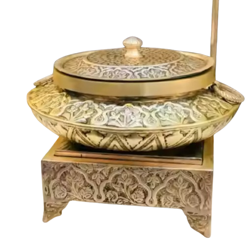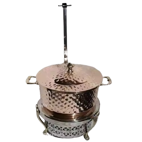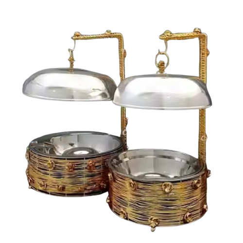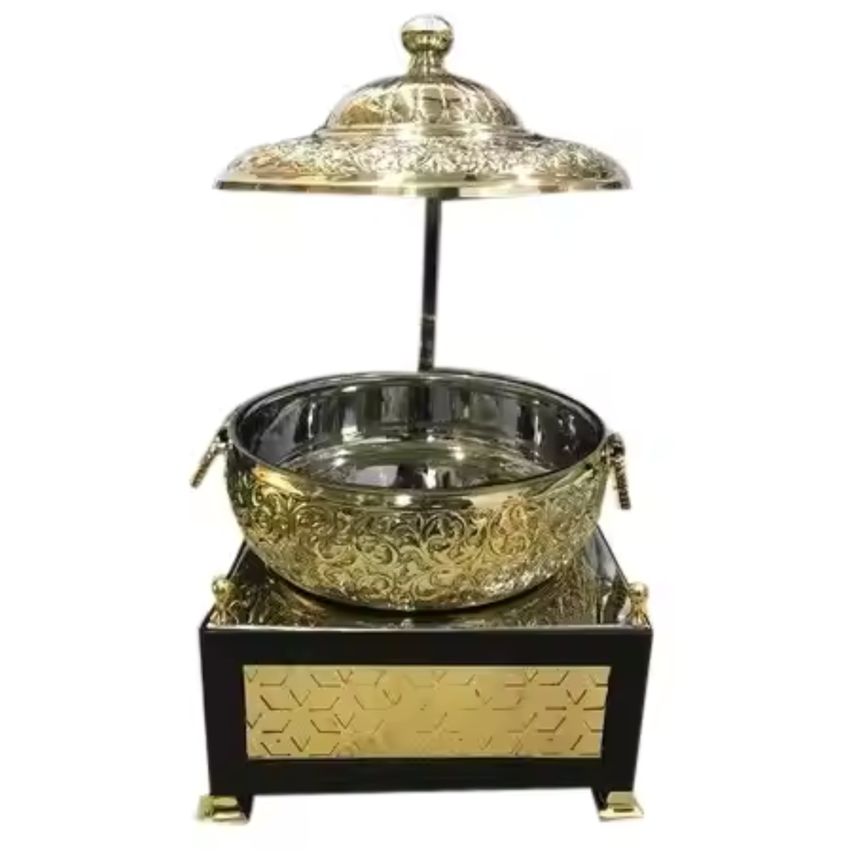 จานอุ่นอาหารสีทองพร้อมที่อุ่นอาหารบุฟเฟ่ต์โรงแรมอุ่นอาหาร