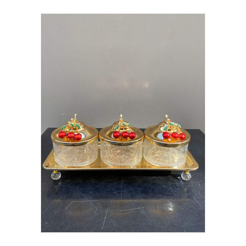 ชุดจานเสิร์ฟทรงกลม 4 ชิ้น สีทอง ลายเชอร์รี่ แนวธรรมชาติ ดีไซน์หรูหรา วัสดุ CAM ขนาด 40.5 ซม. ของแท้จาก TR Origin