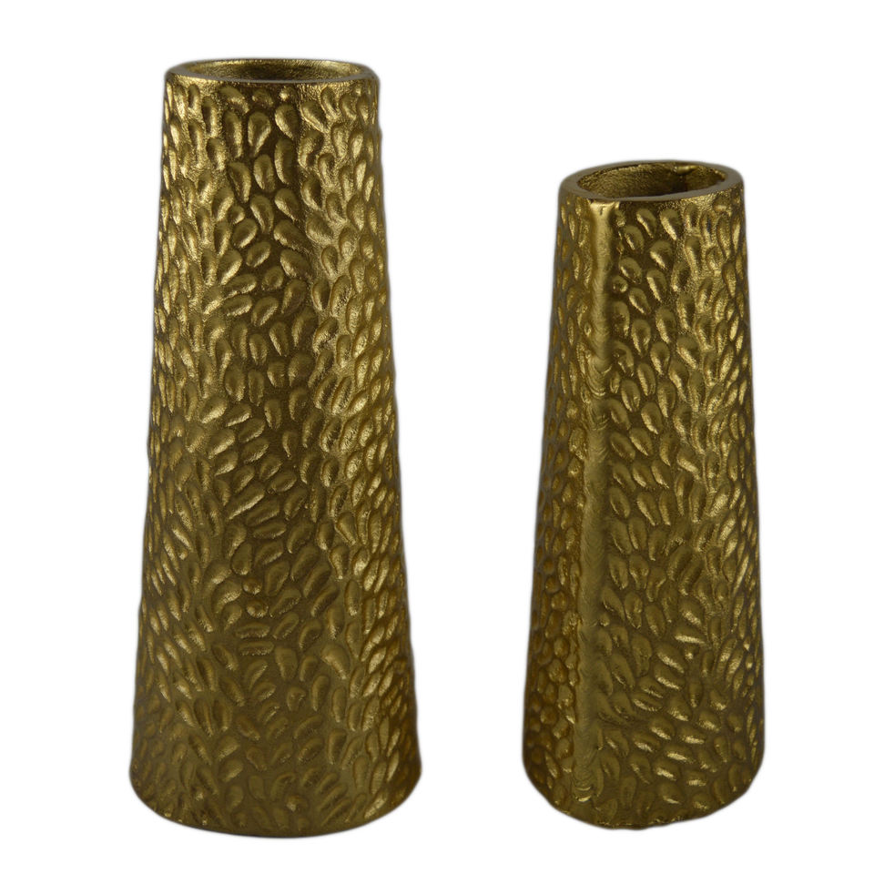 แจกันดอกไม้โลหะรูปทรงกรวยสีทองสำหรับตกแต่งบ้านทำจากอินเดีย