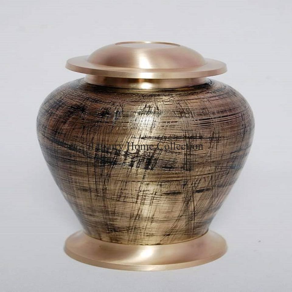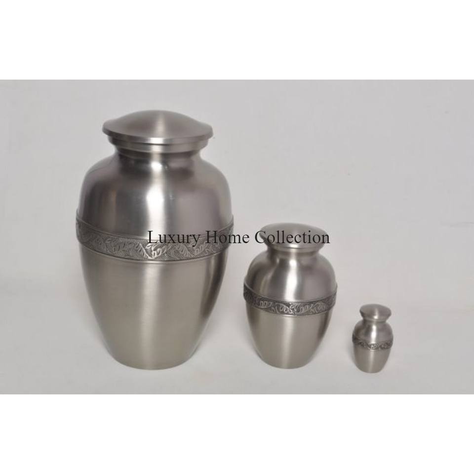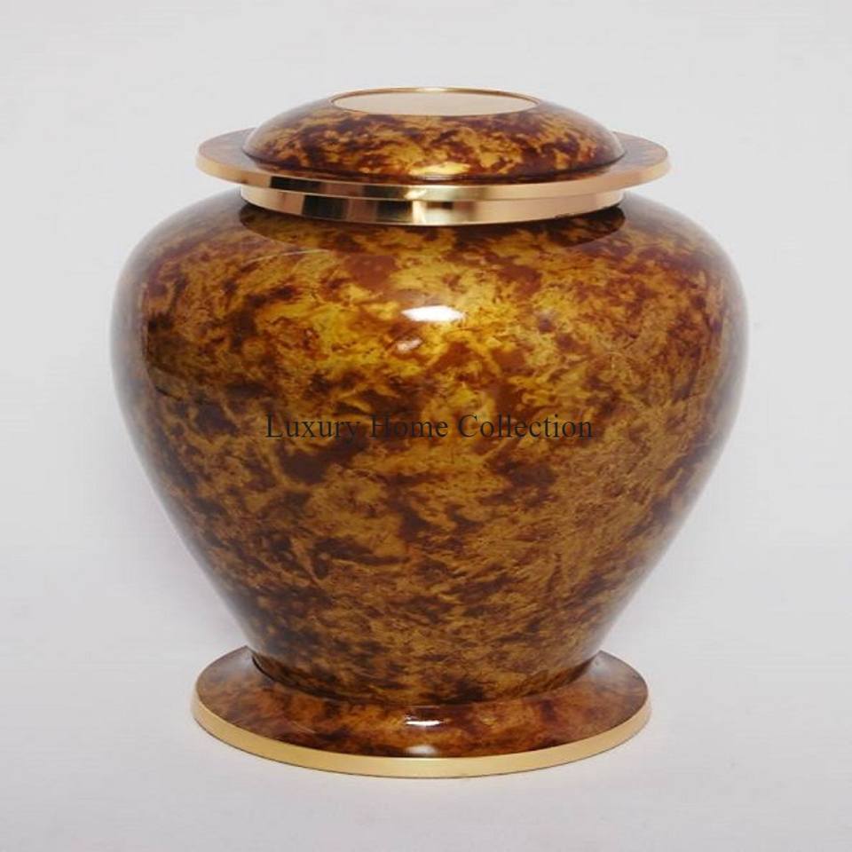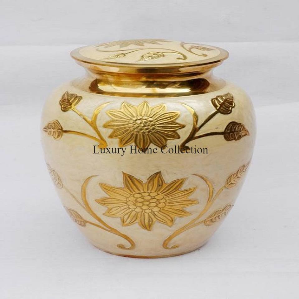 โกศใส่เถ้ากระดูกและกระถางและเหยือกสีครีมเคลือบผงออกแบบลายดอกไม้ใบไม้สีทอง