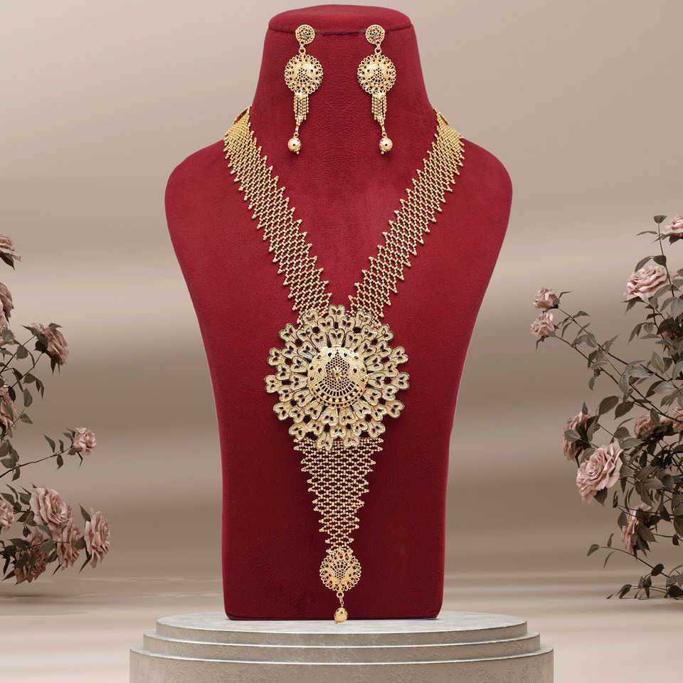 ชุดสร้อยคอและต่างหูห้อยชุบทองแบบปรับได้
