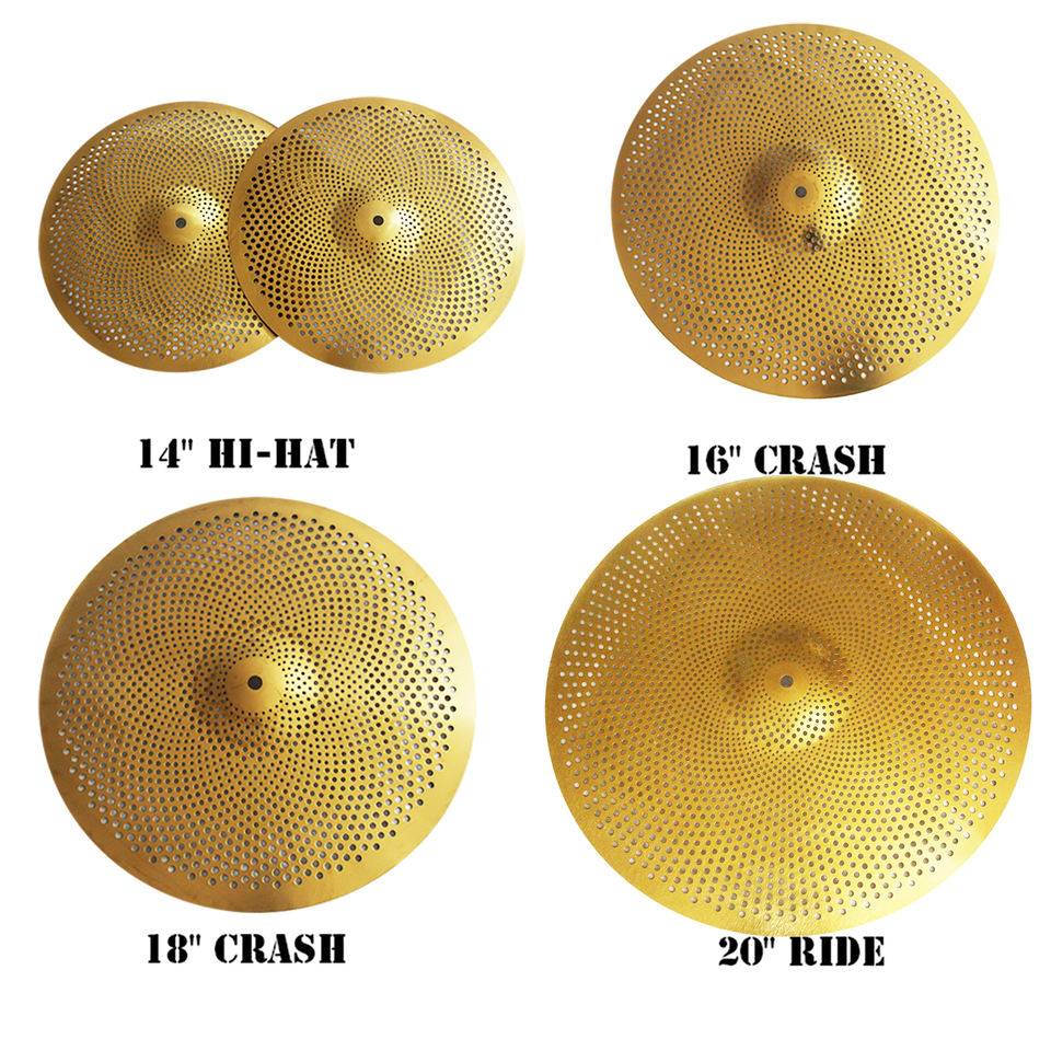 Gold Color Indoor Practice Mute Cymbals Low Volume Cymbal Set 14 Hihat+16 Crash+18 Crash+20 Ride