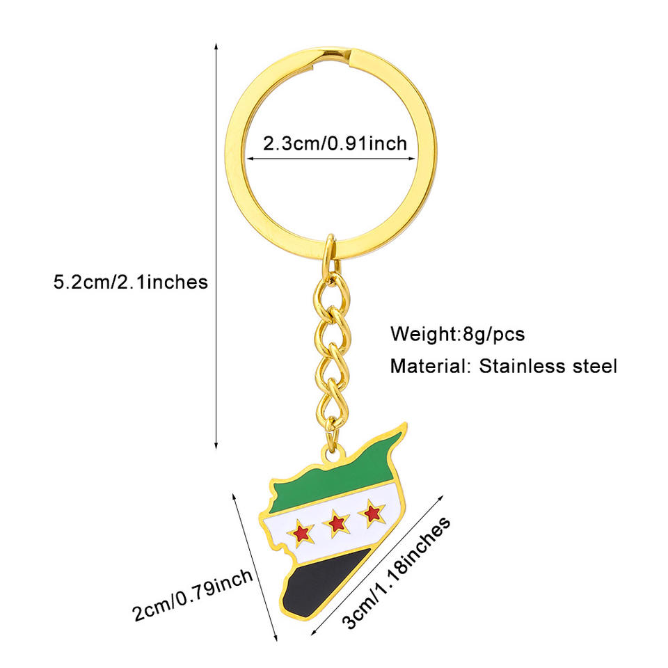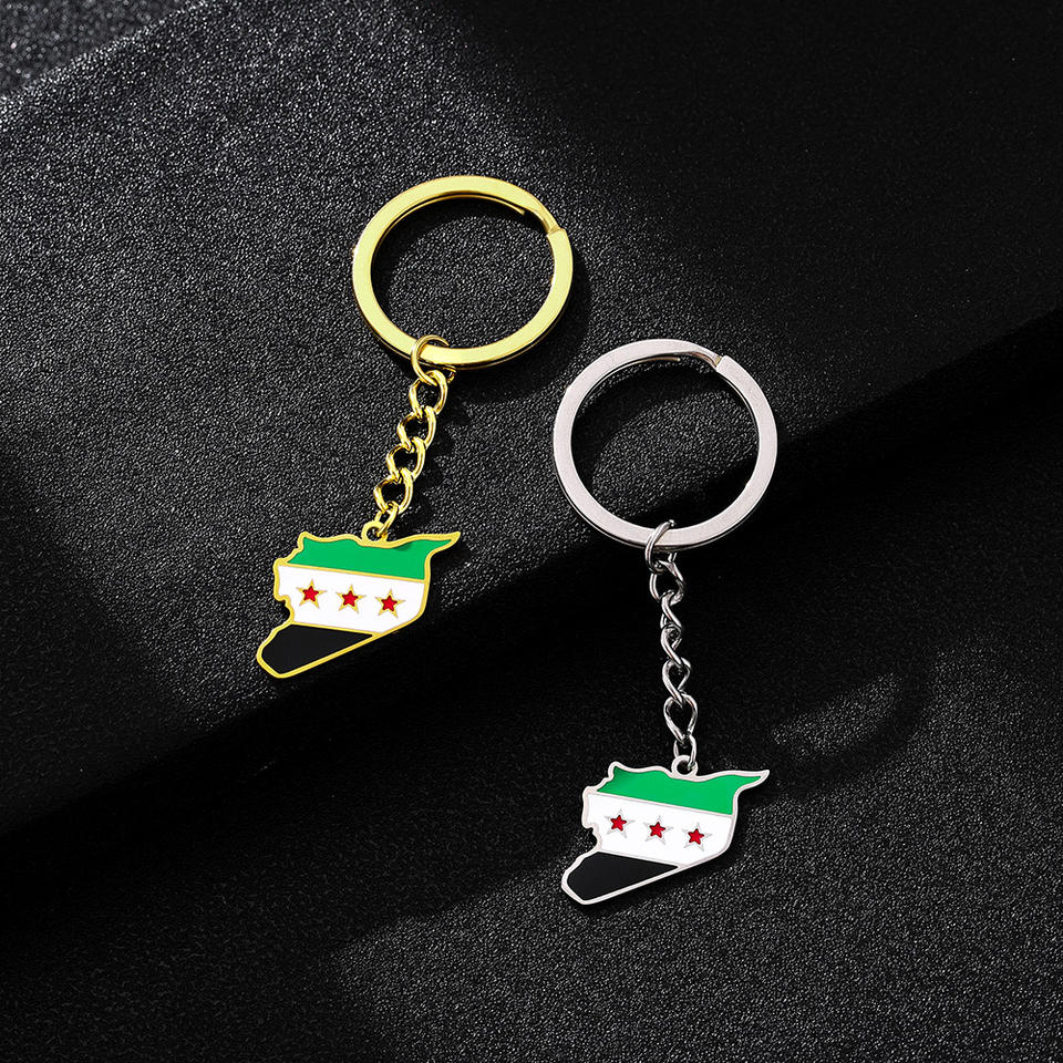 พวงกุญแจธงทรงกลมหรูหราสีทองสไตล์ธงชาติซีเรียทำจากโลหะผสมสไตล์ชาติพันธุ์