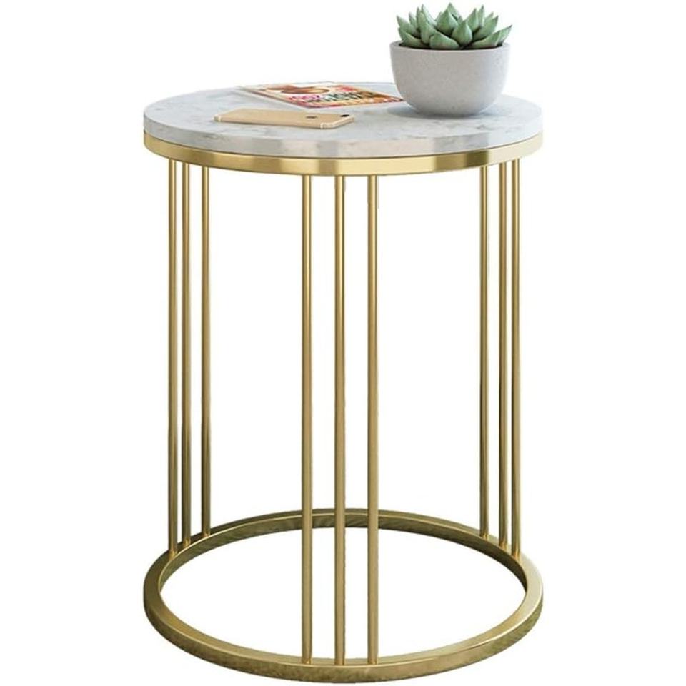 กรอบโลหะสีทอง & หินอ่อนโต๊ะข้างกาแฟดีไซน์ทันสมัยสำหรับห้องนั่งเล่นหรือพื้นที่เลานจ์ของคุณ