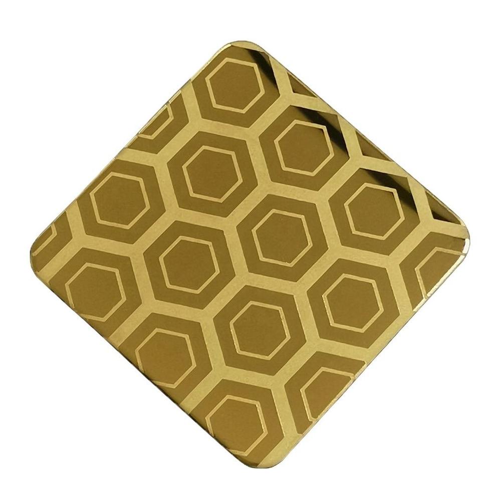 แผ่นตกแต่งสแตนเลสสตีลเคลือบ PVD สีทอง 316 สำหรับตกแต่งโรงแรมหรู