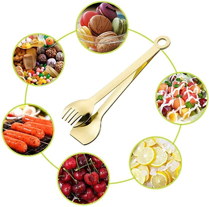ที่คีบขนมปังสแตนเลสสีทองดีไซน์กระจกขัดเงาเครื่องครัวที่สมบูรณ์แบบใช้อุปกรณ์รับประทานอาหารสุดหรู
