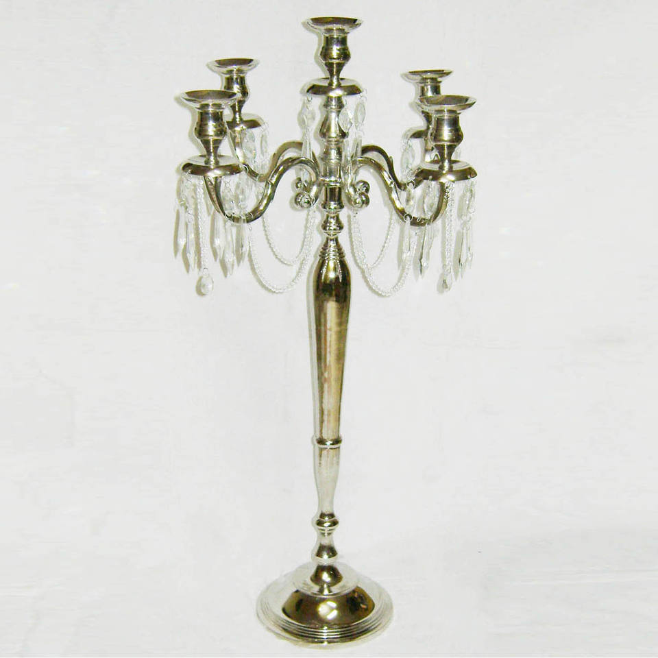 เชิงเทียนคริสตัลสีทอง5แขนสำหรับตกแต่งพื้นทำด้วยมือเชิงเทียนอลูมิเนียมเชิงเทียนสีทอง
