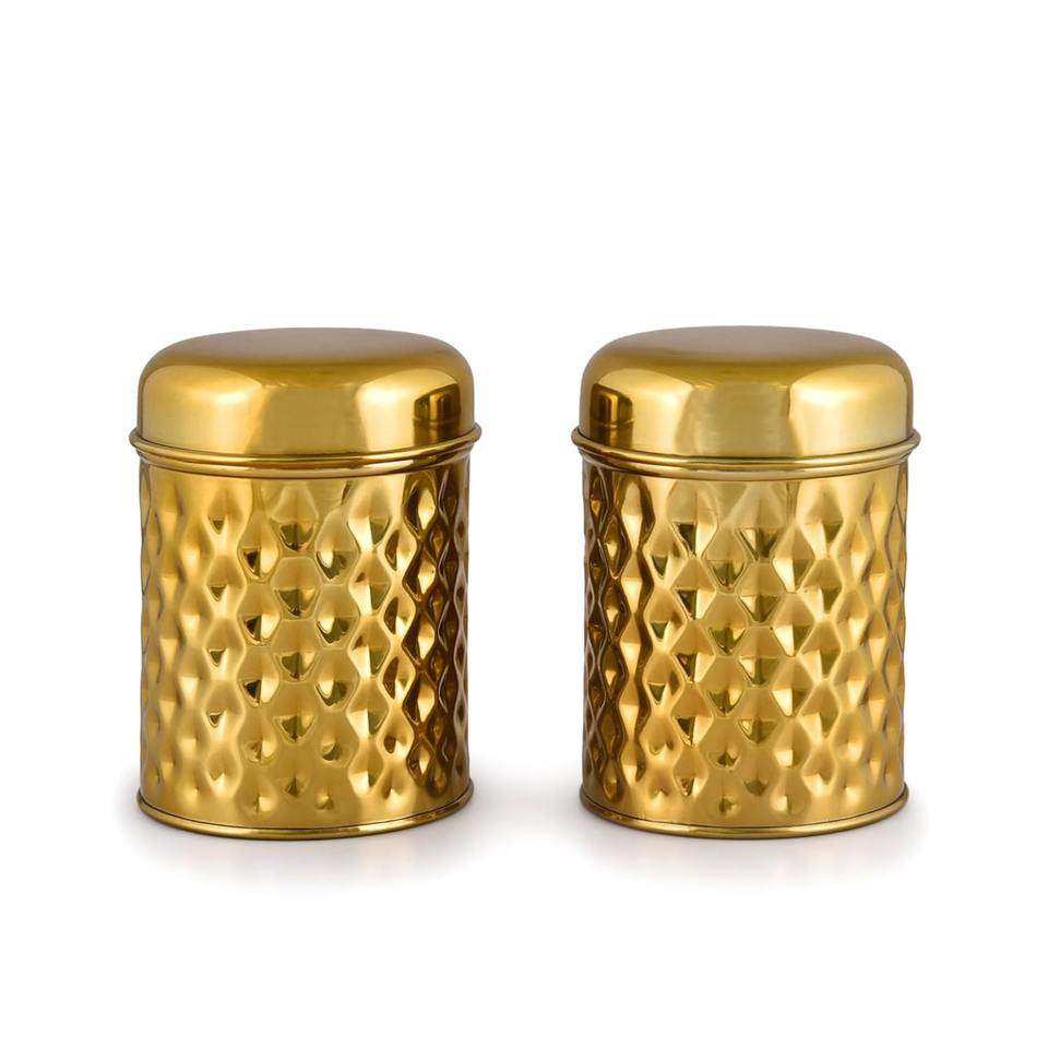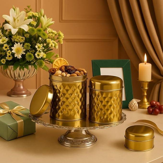 ชุดกระปุกเก็บของโลหะลายนูนลายทองคำและเพชร ดีไซน์ทันสมัยหรูหรา รูปทรงกระบอก สำหรับใส่ผลไม้อบแห้ง