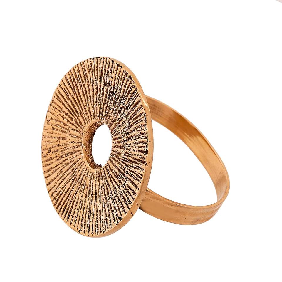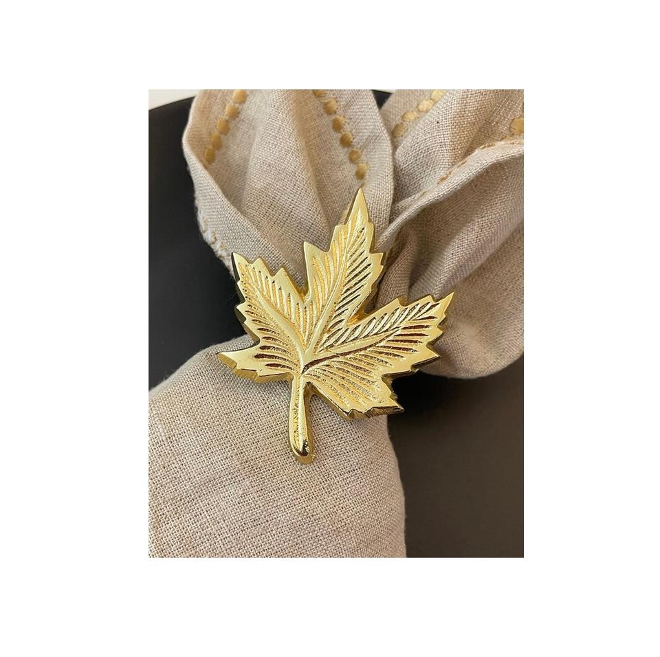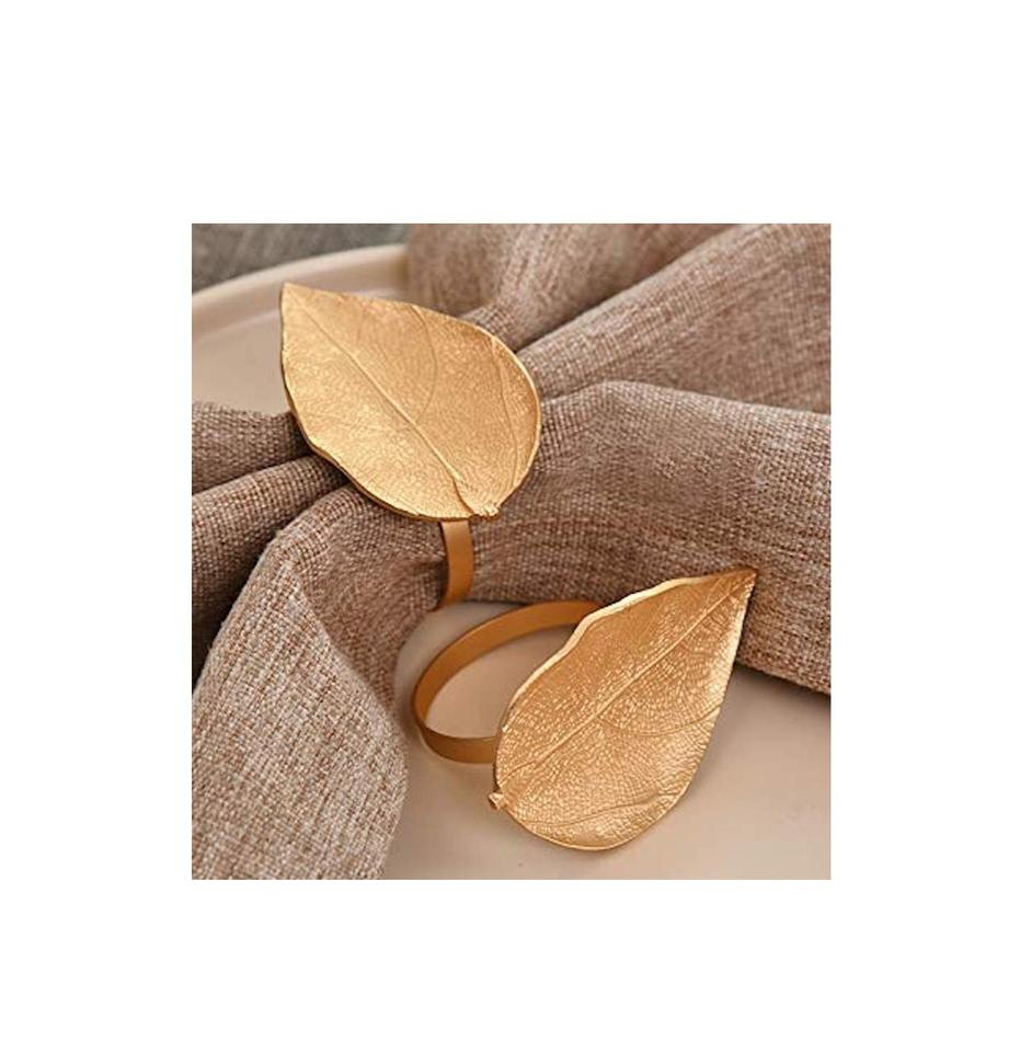 ชุดแหวนห่วงโลหะรูปใบไม้คู่สีทอง2ชิ้นดีไซน์จากโลหะที่ทำด้วยมือเพื่อการตกแต่งโต๊ะที่ได้แรงบันดาลใจจากธรรมชาติและสง่างาม