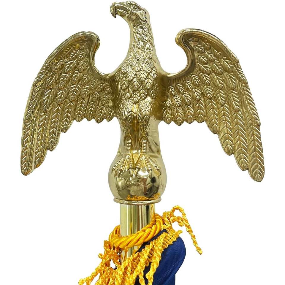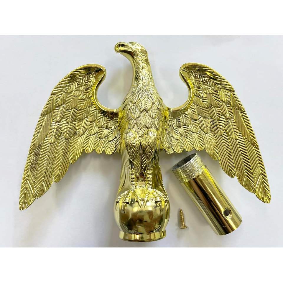USA TOP FLAGSINC หัวประดับธงรูปนกอินทรีสีทอง สำหรับเสาธงในร่ม ทำจากโลหะผสมสังกะสี แข็งแรงทนทาน ขนาด 1 นิ้ว น้ำหนัก 350 กรัม ของตกแต่งบ้านที่แปลกใหม่และสร้างสรรค์
