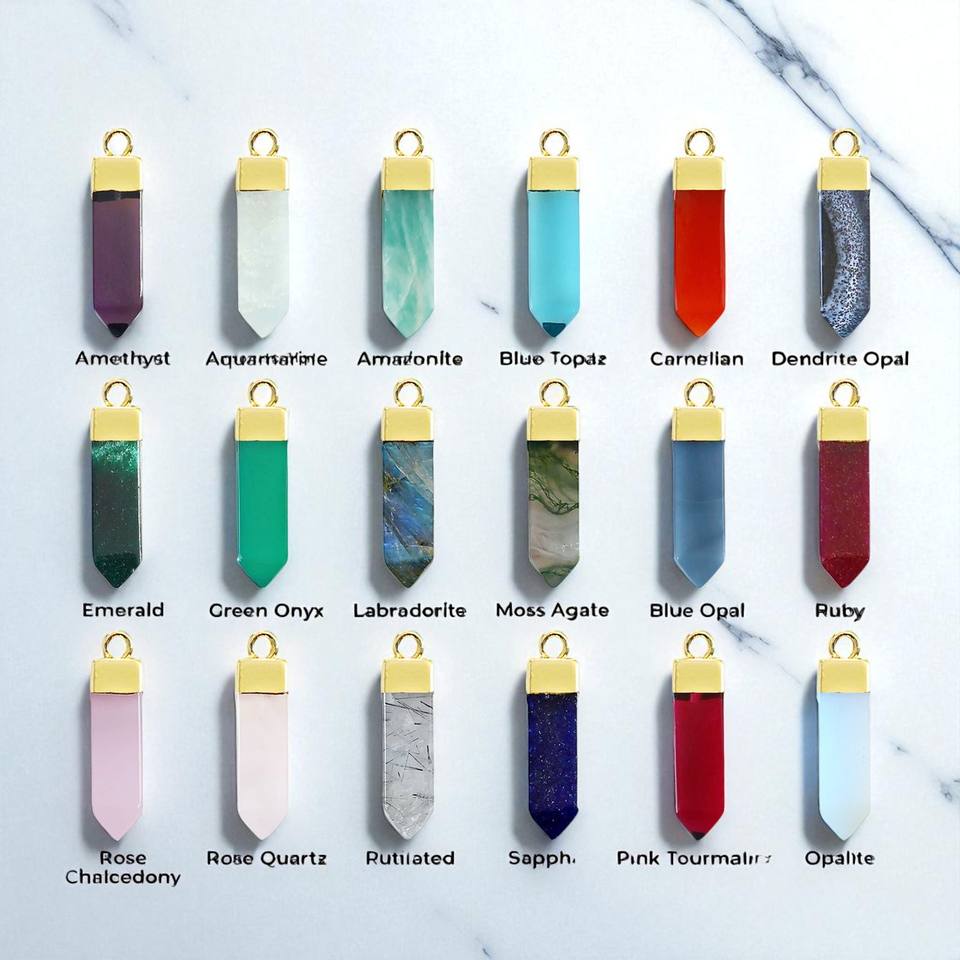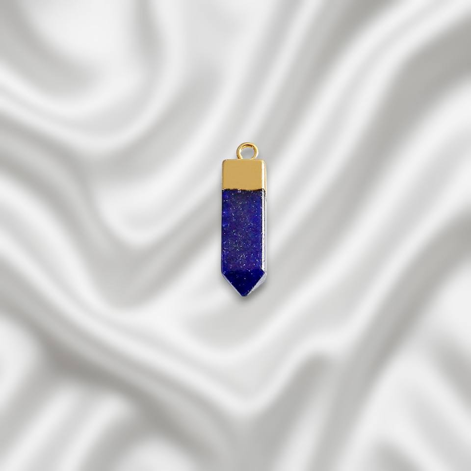 จี้ทรงดินสอพลอยไพลินย้อมสีทองสำหรับทำเครื่องประดับต่างหูและสร้อยคอ