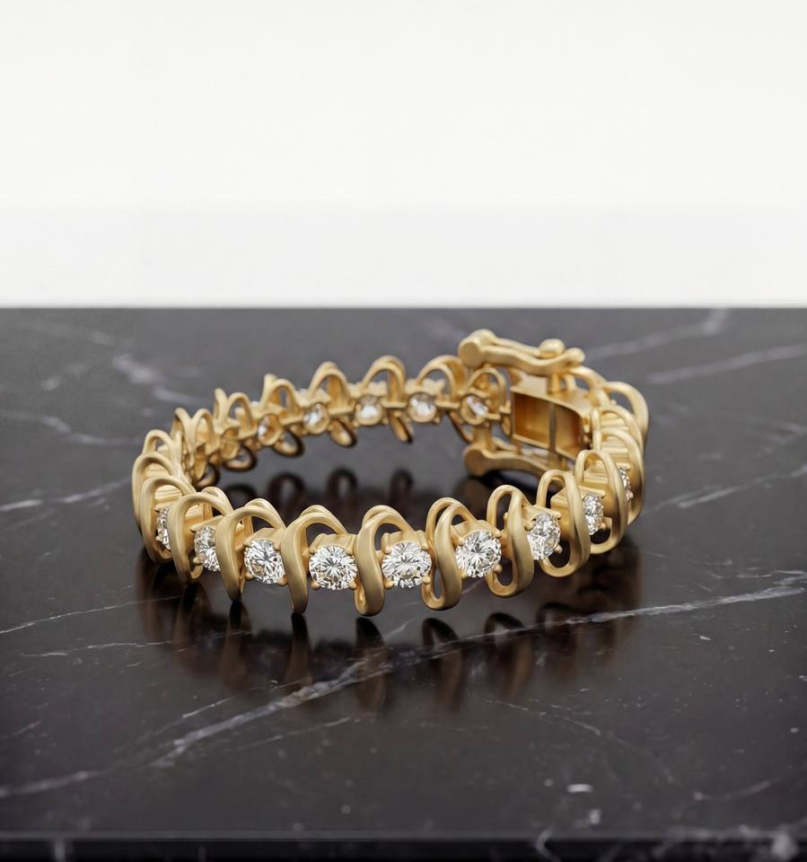 กำไลข้อมือเพชรดีไซน์คลื่นคลาสสิกหรูหรา ทอง 14K 18K ดีไซน์โค้งมนพลิ้วไหว - ของขวัญวันครบรอบแต่งงานสำหรับผู้หญิงที่เหนือกาลเวลา